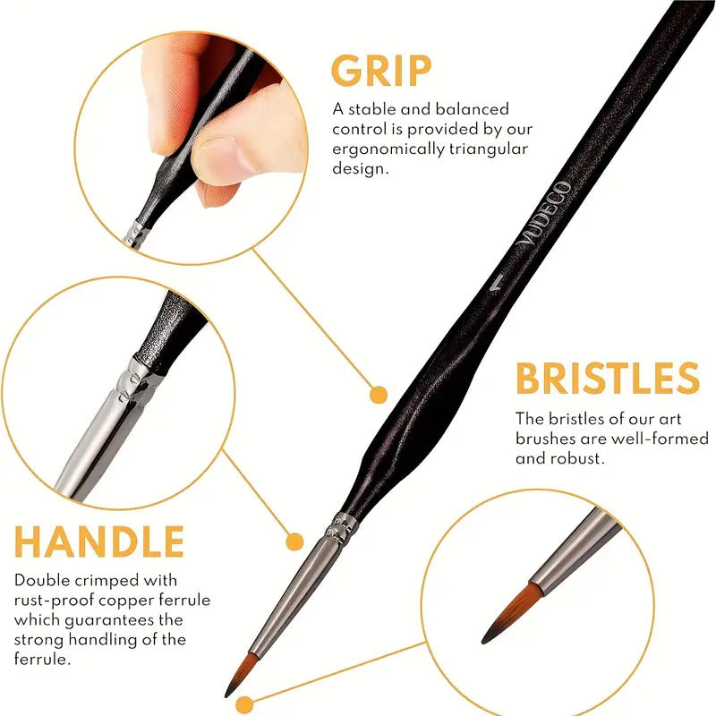 The Detail Paint Brushes Miniature Painting Kit includes 12 small brushes designed for detailed painting work. These brushes are suitable for various art projects such as oil, acrylic, watercolor, and paint-by-numbers. They are also ideal for painting miniature figurines, scale models of vehicles, ceramics, pottery, nails, Christmas ornaments, and egg or rock painting.
